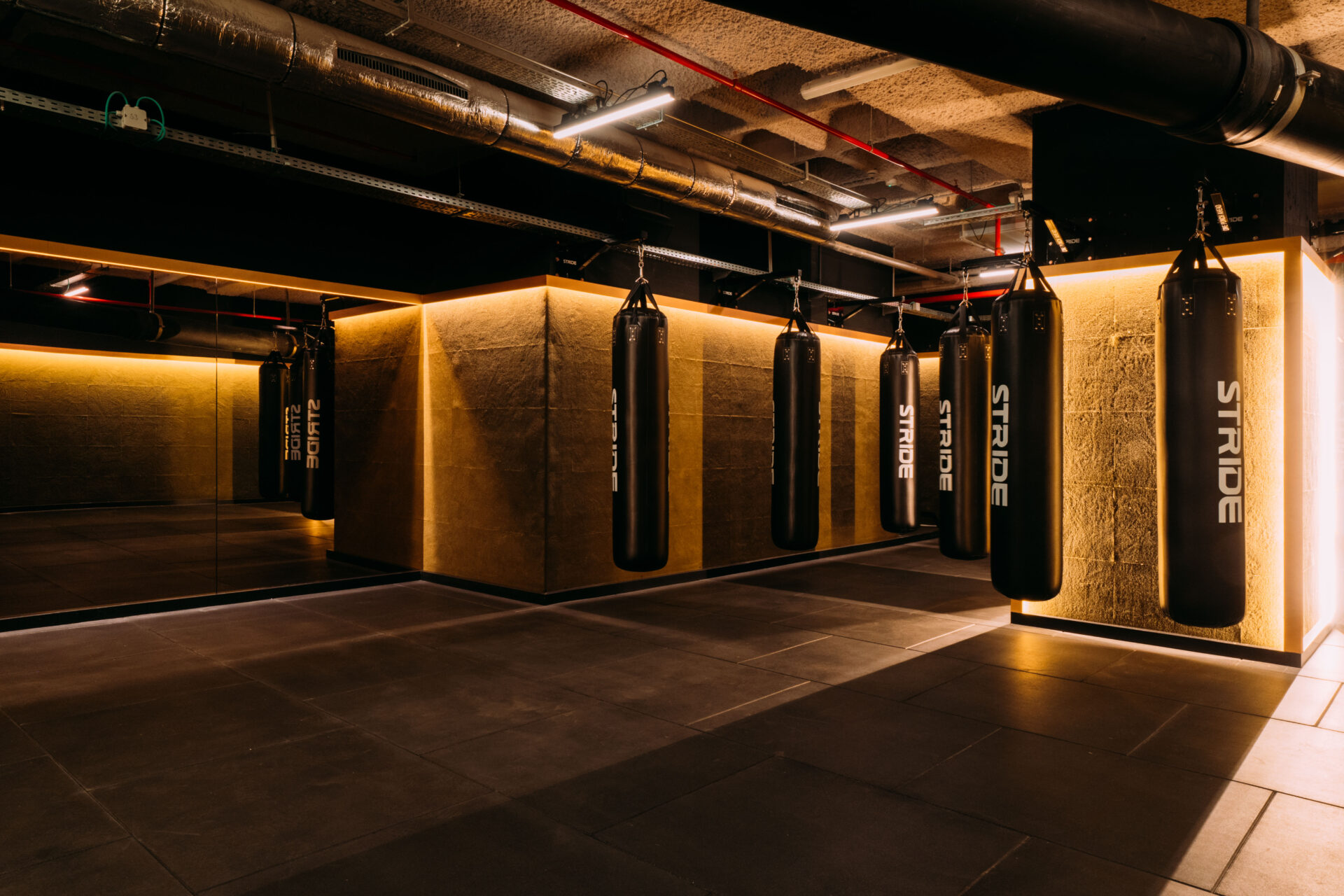 Equipped with Stride material, an immersive atmosphere fuels your performance with Hydrobags, Punching bags and boxing ring.